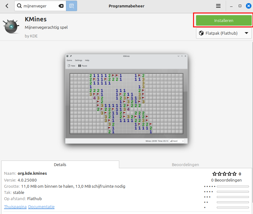 - Je krijgt een lijst met beschikbare versies (bv. KMines).
