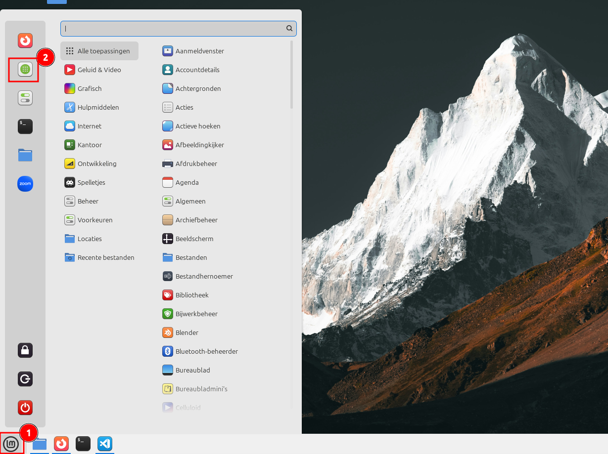 Programmabeheervenster (zie screenshot hieronder). Je kan het startdialoog openen via het Linux Mint logo in de linker onderhoek van het scherm.